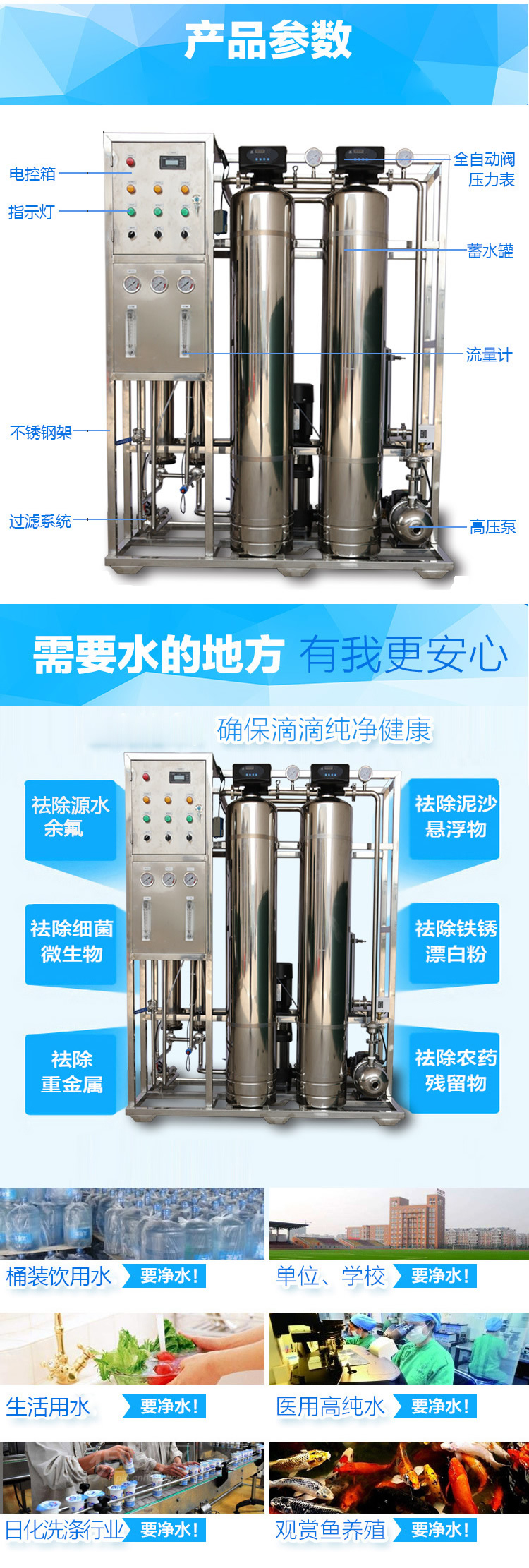 不銹鋼反滲透純水設(shè)備功能: